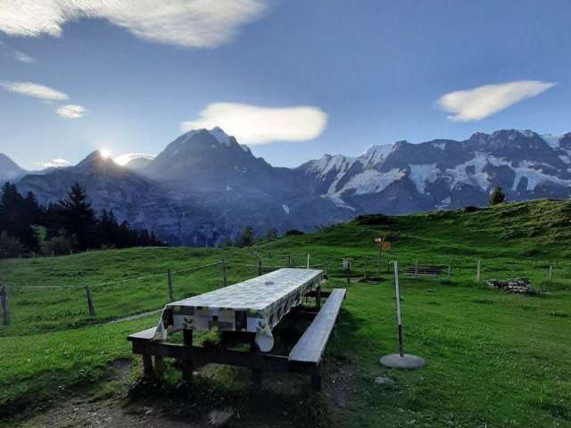 Die Spielbodenalp liegt einige Kilometer von Mürren entfernt und kann nur zu Fuss erreicht werden. Die Wanderung ab Mürren dauert knapp eine Stunde. Auf dem Northface Trail gelangst du über Blumenwiesen und durch das malerische Gimmelen zum Spilboden, wo sich die Alp mit Blick auf Eiger, Mönch und Jungfrau befindet.