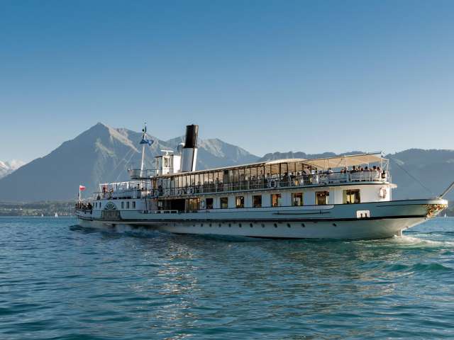 Die Schifffahrt hat eine lange Tradition: Bereits 1835 nahm das erste Dampfschiff den Betrieb auf dem Thunersee auf. Heute sorgt eine moderne Flotte für komfortable Fahrten – sei es als gemütliche Verbindung zwischen Ausflugszielen oder als stimmungsvolle Kulisse für kulinarische Themenfahrten.