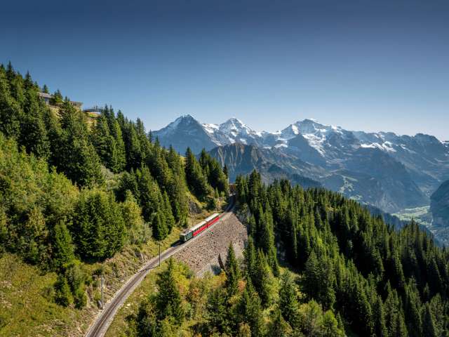 Weiter oben weicht die Voralpenlandschaft der freien Sicht auf das weiss glänzende Dreigestirn der Berner Alpen. Genau gegenüber liegen nämlich Eiger, Mönch und Jungfrau. Einmalig ist der Szeneriewechsel nach der Durchfahrt des «Grätlitunnels» (5,6 km).