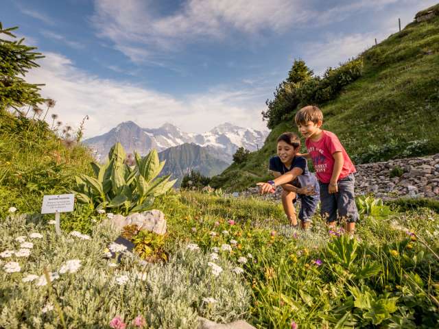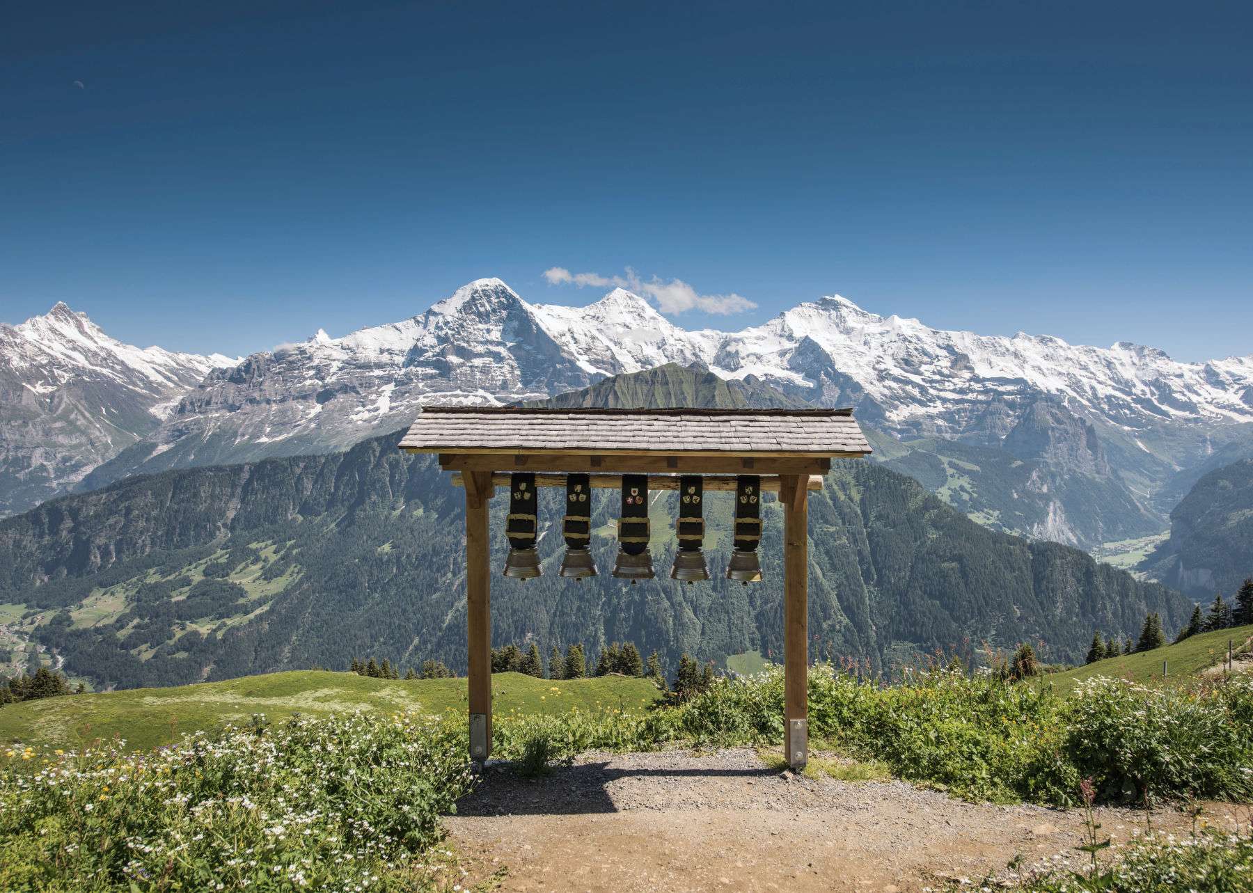 Die im Juni 2025 eröffnete Aussichtsplattform bietet ein atemberaubendes Panorama auf die Berner Alpen. Beim kurzen Spaziergang schweift der Blick über blühende Alpwiesen und eindrucksvolle Gipfel – bis hinunter zum Thunersee, der tief im Tal liegt.