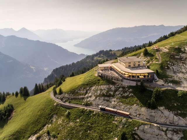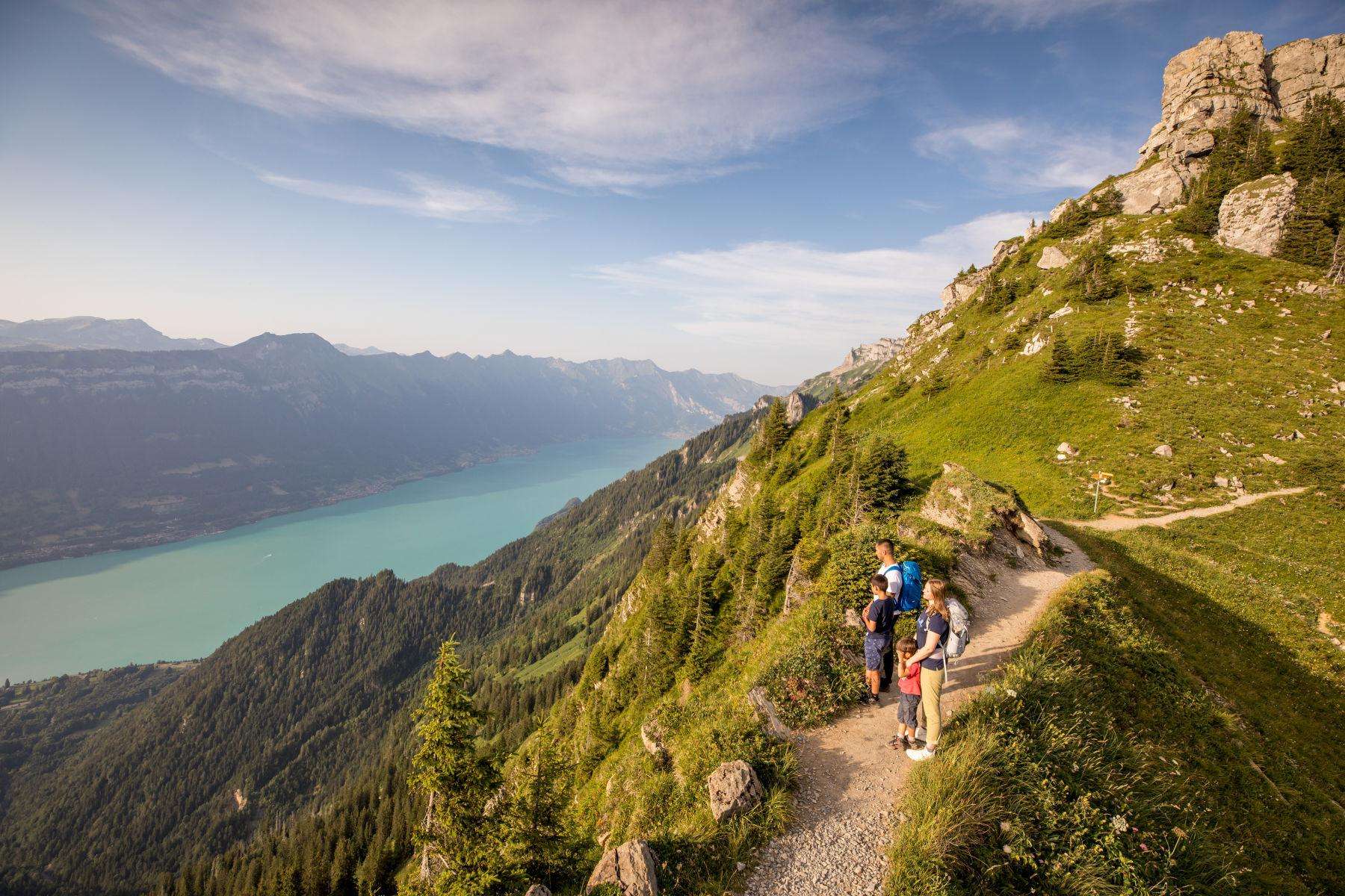 Unterwegs beeindruckt die Vielfalt der Natur: Wälder, Alpweiden und die grandiose Aussicht auf die berühmten Landschaften des Berner Oberlandes mit Thuner- und Brienzersee.