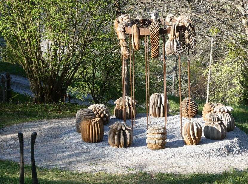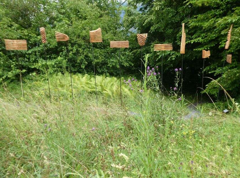 Die ausgestellten Plastiken, vorzugsweise der konstruktiven Richtung, bieten einen spannungsvollen Kontrast zu dieser Idylle und können dank der Modulation des Geländes aus den unterschiedlichsten Blickwinkeln entdeckt werden.