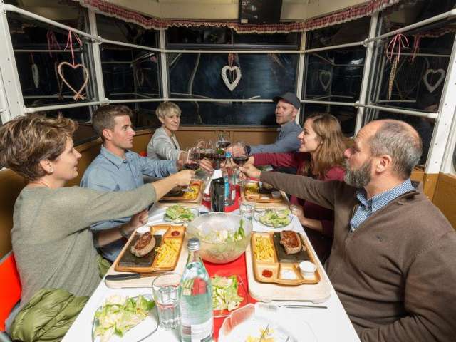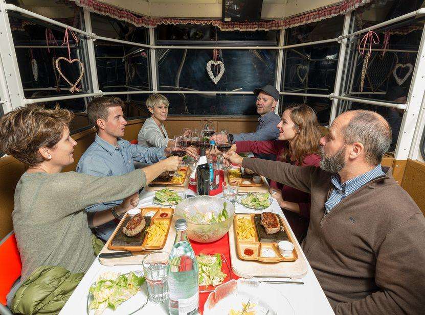 Die Dinner in der Pfingsteggbahn sind ein einzigartiges Erlebnis aus Bahnromantik und Bergidylle. Nach der Rückfahrt zur Talstation servieren wir dir das Dessert mit Kaffee und einem Digestif.