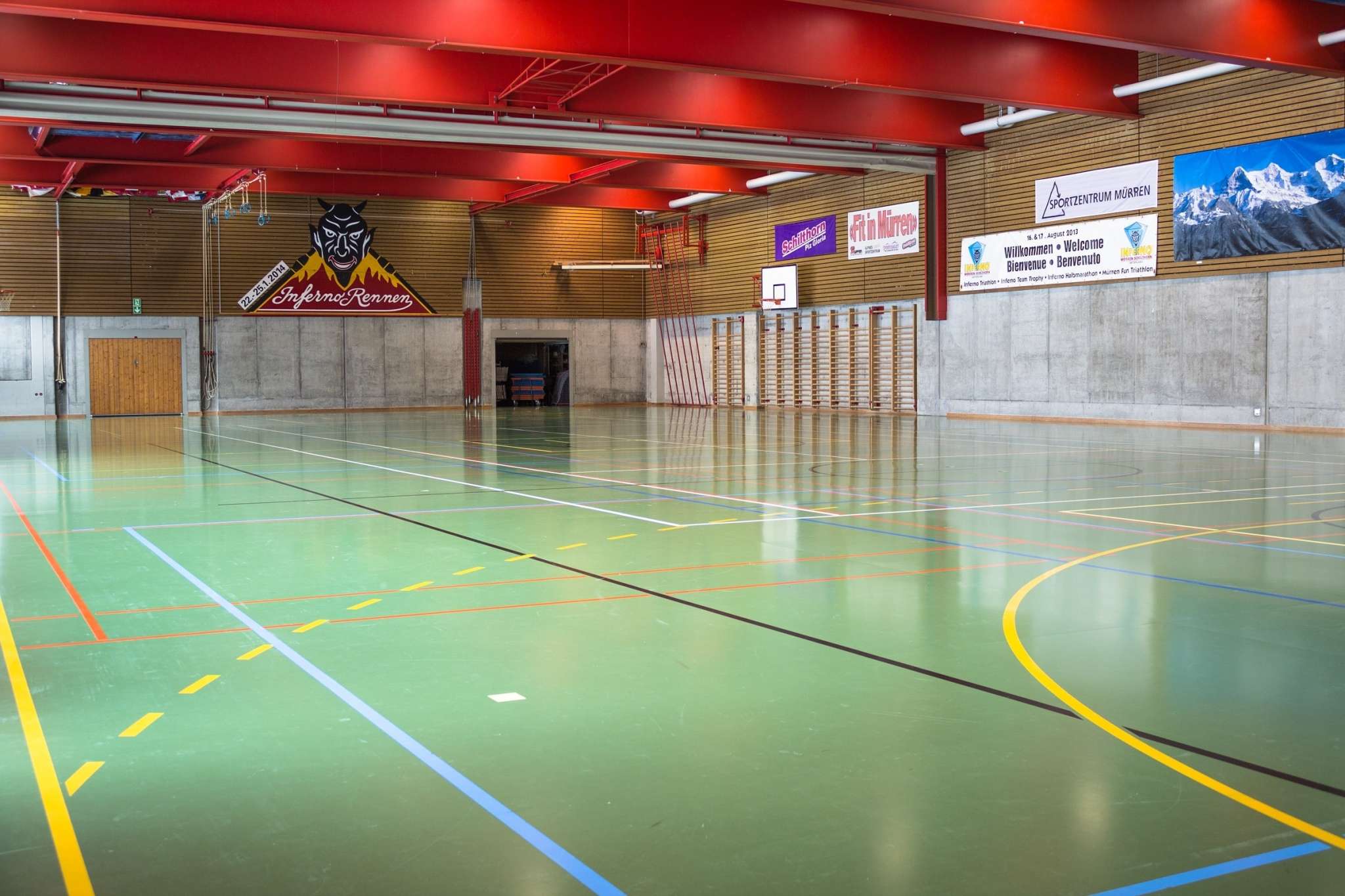 In Mürren gibt es viel Raum für Sport. Wenn es draussen dunkel oder nass wird, bietet sich die Sporthalle im Alpinen Sportzentrum an.