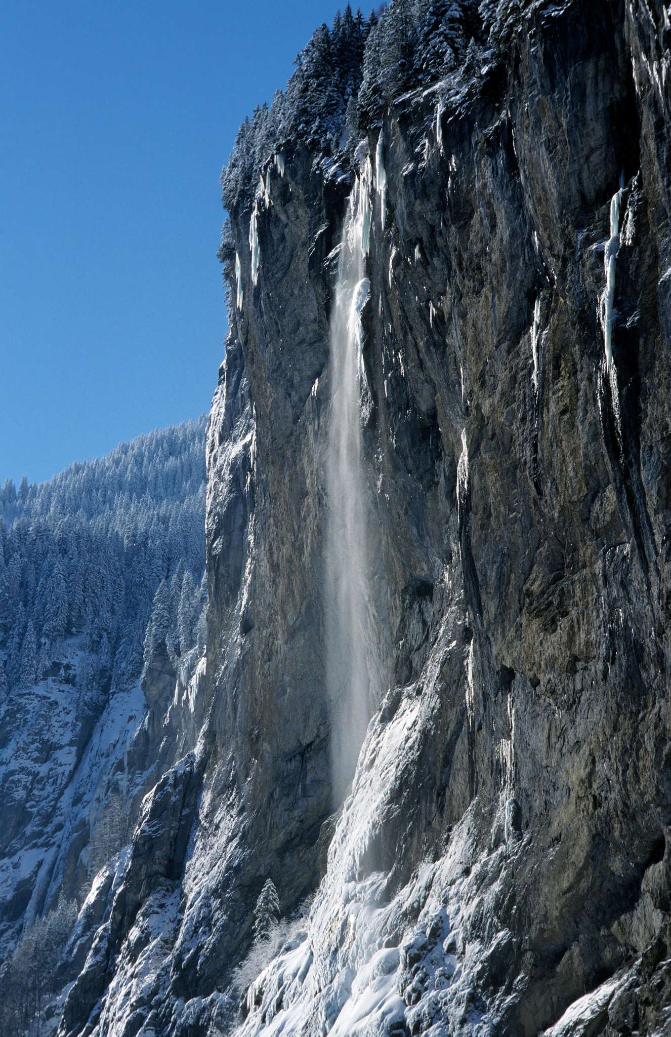 Der Staubbach Wasserfall gehört zu den bekanntesten Naturwundern der Schweiz und prägt das Landschaftsbild von Lauterbrunnen wie kaum ein anderer Ort. Mit einer Fallhöhe von rund 297 Metern stürzt das Wasser frei von den steilen Felswänden ins Tal und zerstäubt dabei zu feinem Nebel — ein Anblick, der dem Wasserfall seinen Namen gegeben hat.
